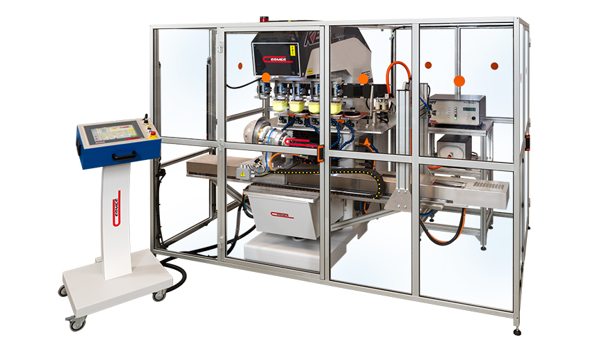 Forte della sua esperienza nel campo delle macchine tampografiche create ad hoc per particolari esigenze, Comec Italia ha creato una macchina specifica per la stampa su elmetti da lavoro.